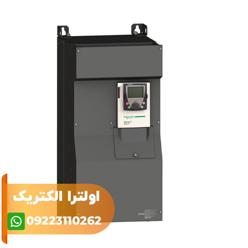 اینورتر یا درایو وسیله ای الکترونیکی است که در مسیر تغذیه موتور نصب می شود و سرعت موتور را کنترل می کند. استفاده از اینورتر باعث صرفه جویی در مصرف برق، محافظت از الکتروموتورها و افزایش طول عمر آنها می شود. اینورتر اشنایدر ATV71 با کد فنی ATV71HC16N4 موتورهای سنکرون و آسنکرون سه فاز را تغذیه می کند. اینورتر برق صنعتی دارای توان نامی 160 کیلو وات یا 250 اسب بخار و ولتاژ خروجی نامی 380 تا 480 ولت AC است. درجه حفاظت این کنترل دور IP20 است. در این درایو اینورتر صفحه نمایشی جهت نشان دادن وضعیت و خطا، یک دکمه چرخشی، یک عدد فیلتر EMC و هیت سینک تعبیه شده است. نمایشگر LED روی صفحه، اطلاعات مورد نیاز کاربر را نمایش می دهد. اینورتر ATV71 با نرم افزار SoMove سازگار است که ذخیره و انتقال تنظیمات به درایو یدکی را امکان پذیر کرده و تنظیمات و راه اندازی درایو جایگزین بدون هیچ گونه خطایی انجام می دهد. اینورتر اشنایدر ATV71 در کاربردهای سنگین و صنعتی با گشتاور بالا مثل جرثقیل استفاده می شود. درایو  ATV71 برای رنج فرکانسی زیاد در موتورها با سرعت بالا استفاده می شود و می توان آن را به صورت موازی به موتورهای خاص متصل کرد. این درایو سرعت ایستای دقیقی دارد و قدرت ذخیره سازی انرژی خوبی در موتور های سنکرون در مد حلقه باز از خود نشان می دهد. اینورتر اشنایدر ATV71 در سرعت های پایین با گشتاور دقیق با سنسور یا بدون سنسور عمل می کند.