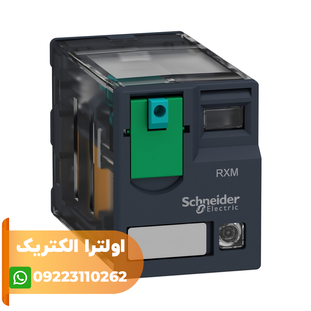 رله های مینیاتوری اشنایدر سری RXM بخشی از رله های الکترومکانیکی هستند. رله RXM دارای چهار عدد کنتاکت باز است. این قطعه با جریان 6 آمپر و با ولتاژ 24 ولت DC در فرکانس 50/60 هرتز کار می کند. این تجهیز دارای یک دکمه تست و یک نشانگر برای مشخص کردن وضعیت کنتاکت است. به محض فشار دادن دکمه آبی رنگ در جلوی قطعه، کلید تست عمل می کند و با برگرداندن قسمت سبز رنگ قفل می شود. نشانگر نارنجی وضعیت کنتاکت را نشان می دهد و در کنار دکمه تست قرار دارد. این محصول مجهز به یک عدد LED سبز رنگ است و زمانی که رله روشن است این چراغ نیز روشن می شود. طراحی این قطعه به صورتی است که برای استفاده در ماشینهای صنعتی، بستهبندی، نساجی، فرایندهای صنعتی مثل HVAC گرمایش، تهویه مطبوع و پمپ، تابلوهای کنترل اتوماسیون، تابلو برق های ولتاژ پایین/متوسط، کنترل موتور، رابطهای PLC، منابع تغذیه، تجهیزات ساختمانی و پزشکی، کنترلهای روشنایی مناسب است. این محصول طبق مقررات سازگار با محیط زیست تولیده شده دارای استانداردها و گواهینامه های بین المللی (IEC, CE, UL, CSA, EAC, Lloyd’s, RoHS and REACH) است. رله شیشه ای اشنایدر با کد فنی RXM4AB2BD یک رله پلاگین است و روی سوکت/پایه سری RXZE نصب می شود. برای جلوگیری از جا به جا شدن رله، می توان گیره پلاستیکی/فلزی را به رله و سوکت اضافه کرد. این محصول در بسته بندی 10 تایی عرضه می شود.