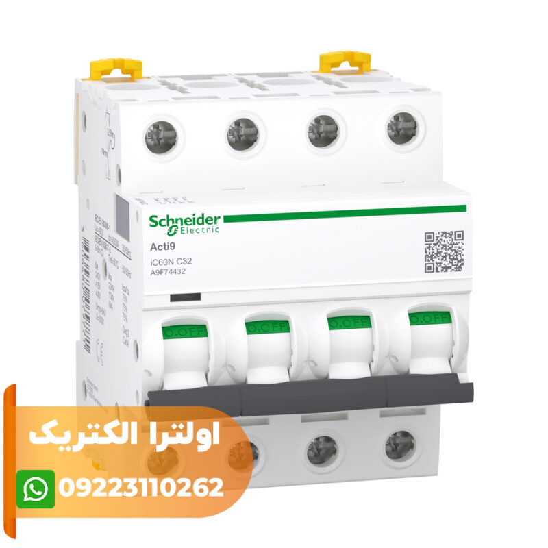 کلید مینیاتوری چهار پل، یک کلید قطع کننده خودکار است که می تواند از تجهیزات موجود در منازل و محیط های اداری_صنعتی در برابر جریان های اضافی حفاظت کند. فیوز مینیاتوری چهار پل مدل IC60N برای راه اندازی موتورهای کم توان با جریان راه اندازی پایین استفاده می شود. جنس محفظه کلید مینیاتوری یکی از موارد مهم در تشخیص کیفیت آن است. برای تشخیص و تفکیک فیوز مینیاتوری چهار پل اشنایدر اصل از کلیدهای تقلبی موجود در بازار، از طریق بوی خاص این مواد به راحتی می توان به جنس عایق غیراستاندارد پی برد. عملکرد مکانیکی سوئیچ کردن بین وضعیت ON و OFF فیوز مینیاتوری چهار پل باید انعطاف پذیر و بدون گیر کردن و لغزش شاسی باشد. قدرت قطع کلید مینیاتوری چهار پل مدل A9F74432 ، و6 کیلو آمپر در ولتاژ 400 ولت DC/AC است.